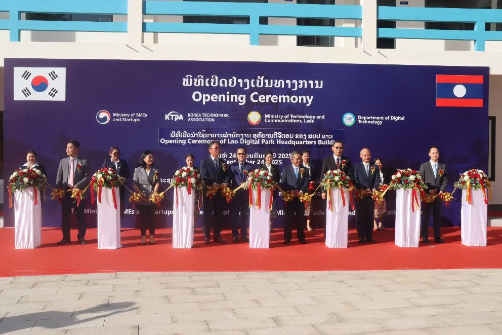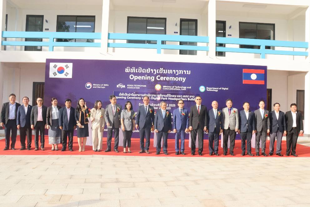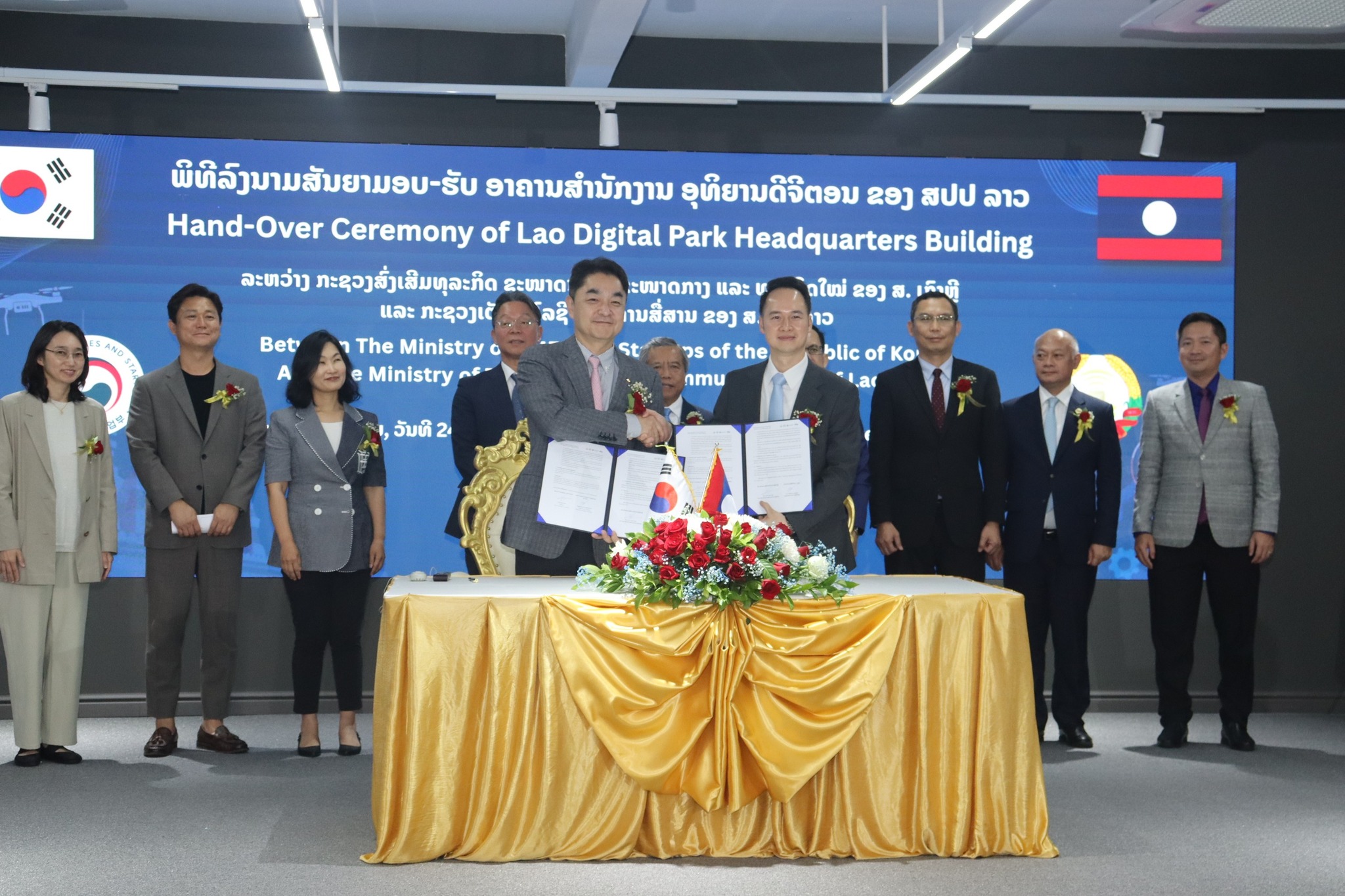ພິທີ ມອບ-ຮັບ ອາຄານສຳນັກງານ ອຸທິຍານດິຈິຕອນ ຂອງ ສປປ ລາວ ພາຍໃຕ້ໂຄງການສະໜັບສະໜູນສ້າງອຸທິຍານດິຈິຕອນ ແລະ ຝຶກອົບຮົມຊ່ຽວຊານໄອທີ ຢູ່ ສປປ ລາວ ຈັດຂຶ້ນໃນຕອນບ່າຍວັນທີ 24 ກັນຍາ 2025 ຜ່ານມາ, ທີ່ສະຖາບັນເຕັກໂນໂລຊີ ແລະ ການສື່ສານ ໂດຍໃຫ້ກຽດເຂົ້າຮ່ວມຂອງທ່ານ ບັນດິດ ສຈ. ບໍ່ວຽງຄຳ ວົງດາລາ, ລັດຖະມົນຕີ ກະຊວງເຕັກໂນໂລຊີ ແລະ ການສື່ສານ (ກຕສ), ທ່ານ ຈອງ ຢອງ ຊູ (Jung Yung Soo), ເອກອັກຄະລັດຖະທູດ ແຫ່ງສາທາລະນະລັດ ເກົາຫຼີ ປະຈໍາ ສປປ ລາວ, ມີບັນດາທ່ານ ຮອງລັດຖະມົນຕີ ກຕສ, ແຂກຖືກເຊີນ ແລະ ພາກສ່ວນກ່ຽວຂ້ອງທັງສອງຝ່າຍ ເຂົ້າຮ່ວມ.