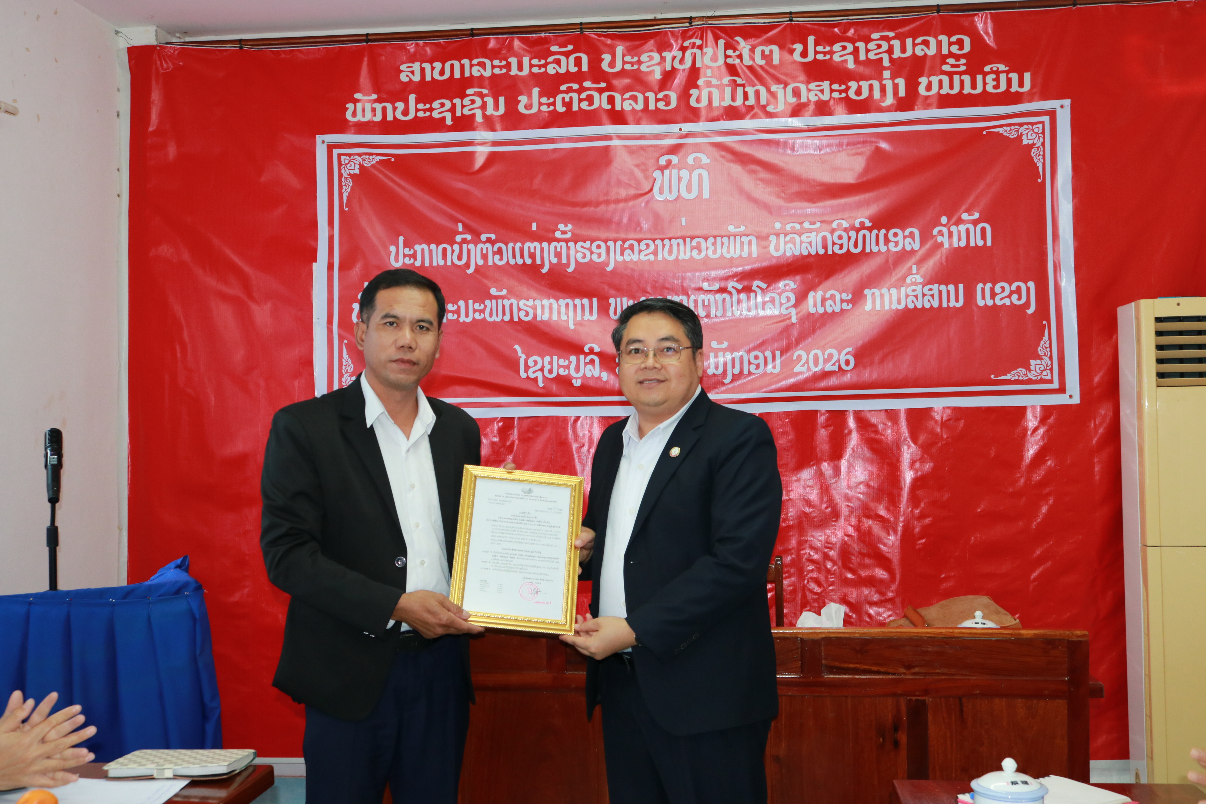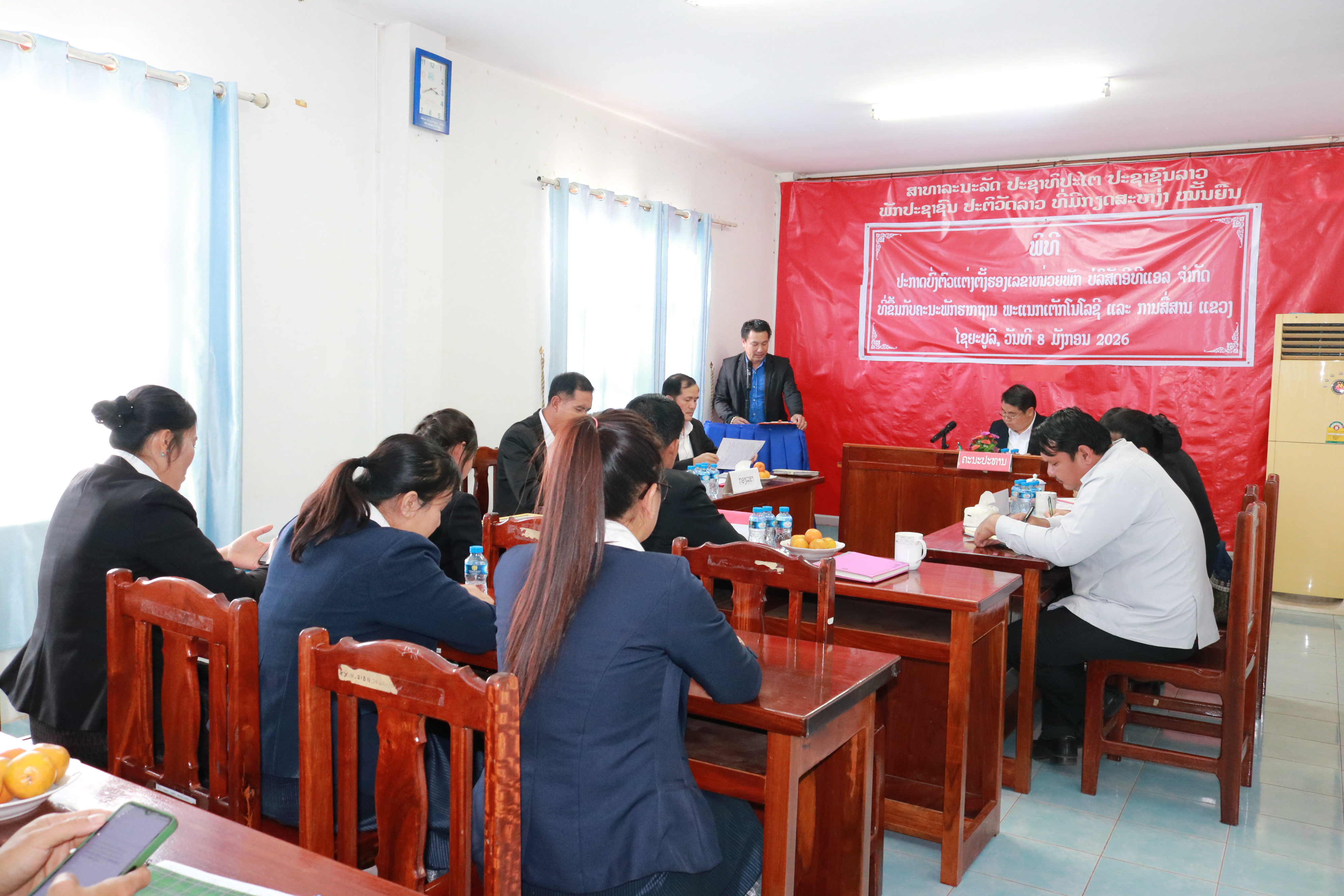 ໃນຕອນບ່າຍຂອງ ວັນທີ 08 ມັງກອນ 2026 ຢູ່ທີ່ຫ້ອງປະຊຸມ ບໍລິສັດ ອີທີແອລ ຈຳກັດ ໄດ້ຈັດພິທີ ປະກາດບົ່ງຕົວແຕ່ງຕັ້ງ ຮອງເລຂາໜ່ວຍພັກ ບໍລິສັດ ອີທີແອລ ຈຳກັດ ທີ່ຂື້ນກັບຄະນະພັກຮາກຖານ ພະແນກເຕັກໂນໂລຊີ ແລະ ການສື່ສານ ແຂວງໄຊຍະບູລີ ໂດຍການເປັນກຽດເຂົ້າຮ່ວມຂອງ ສະຫາຍ ສອນສະຫວັນ ຈັນທະວົງ ເລຂາຄະນະພັກຮາກຖານ ພະແນກເຕັກໂນໂລຊີ ແລະ ການສື່ສານແຂວງ, ມີບັນດາແຂກຖືກເຊີນ ແລະ ສະມາຊິກພັກທັງໝົດເຂົ້າຮ່ວມ.