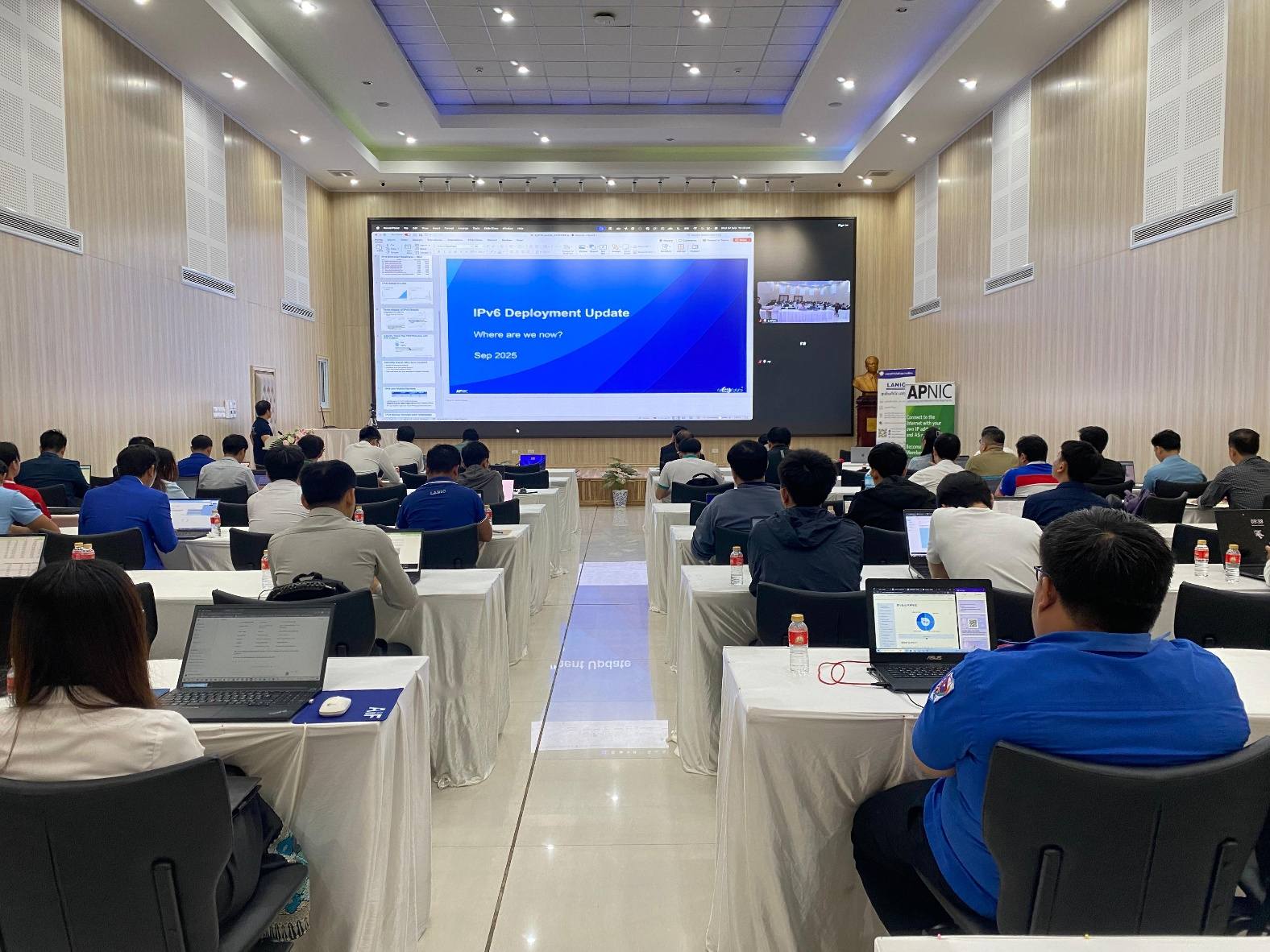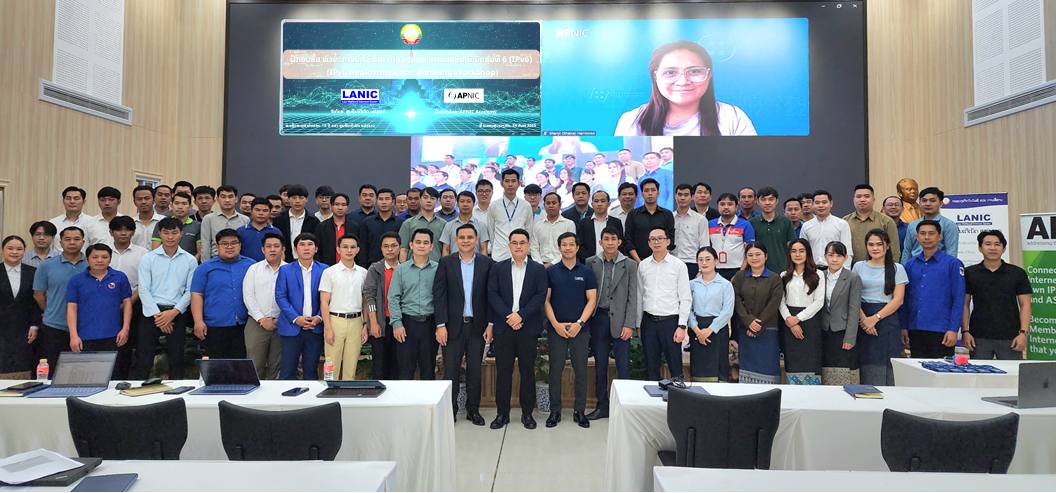 ສູນອິນເຕີເນັດ ແຫ່ງຊາດ ໄດ້ຈັດຝຶກອົບຮົມ ການນຳໃຊ້ ແລະ ການວາງແຜນເລກໝາຍອິນເຕີເນັດ ຮຸ່ນທີ 6 (IPv6 Deployment and Planning Workshop) ຂຶ້ນໃນວັນທີ 24 ກັນຍາ 2025, ທີ່ຫ້ອງປະຊຸມຂອງສູນດັ່ງກ່າວ. ກ່າວເປີດຝຶກອົບຮົມໂດຍ ທ່ານ ໄຊສົມຫວັງ ສຸວັນນະວົງ, ຮອງຫົວໜ້າສູນອິນເຕີເນັດ ແຫ່ງຊາດ, ຊຶ່ງມີ ທ່ານ ນາງ Shane Hermoso, ຫົວໜ້າຄູຝຶກ ຈາກສູນເຄືອຂ່າຍຂໍ້ມູນຂ່າວສານ ອາຊີ-ປາຊີຟິກ (Asia-Pacific Network Information Centre, APNIC) ໄດ້ກ່າວມີຄໍາເຫັນຕໍ່ການຝຶກອົບຮົມໃນຄັ້ງນີ້ ຜ່ານທາງກອງປະຊຸມທາງໄກ ແລະ ທ່ານ ວາຊິຣະ ມີສະຫວັດ, ຄູຝຶກປະຈຳລາວເປັນຜູ້ບັນລະຍາຍຫຼັກ, ໂດຍມີວິຊາການເຕັກນິກ ເຂົ້າຮ່ວມຝຶກອົບຮົມ ຈາກບັນດາກົມ/ສູນ ພາຍໃນ ກະຊວງ ເຕັກໂນໂລຊີ ແລະ ການສື່ສານ ແລະ ບັນດາກະຊວງ, ອົງການ ທີ່ກ່ຽວຂ້ອງ, ມີບັນດາບໍລິສັດໂທລະຄົມມະນາຄົມ ແລະ ອິນເຕີເນັດ, ບັນດາບໍລິສັດຜູ້ສະໜອງອຸປະກອນ, ບັນດາບໍລິສັດຜູ້ໃຫ້ບໍລິການດ້ານດິຈິຕອນ ແລະ ບັນດາທະນາຄານທຸລະກິດ ເຂົ້າຮ່ວມ ຈຳນວນຫຼາຍກວ່າ 80 ທ່ານ.